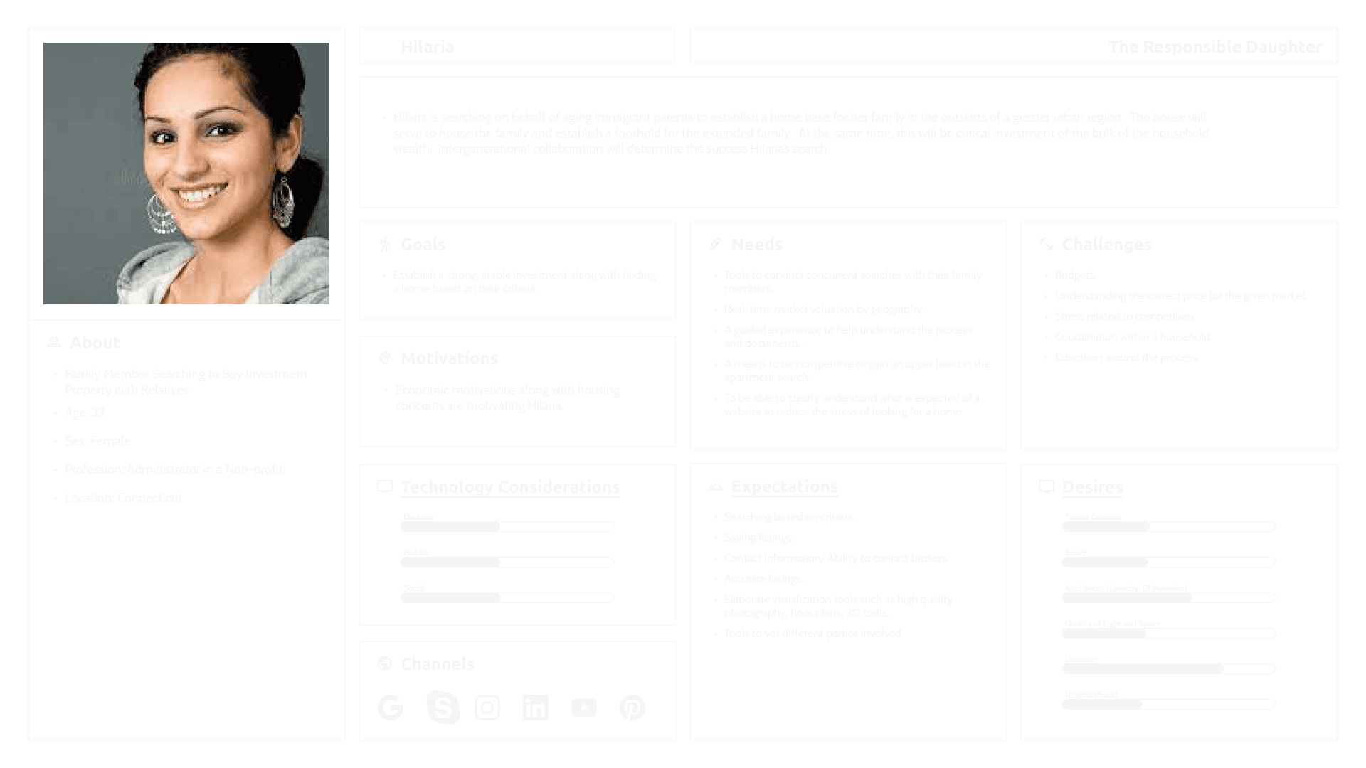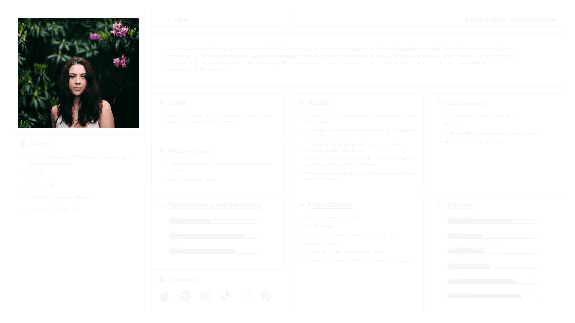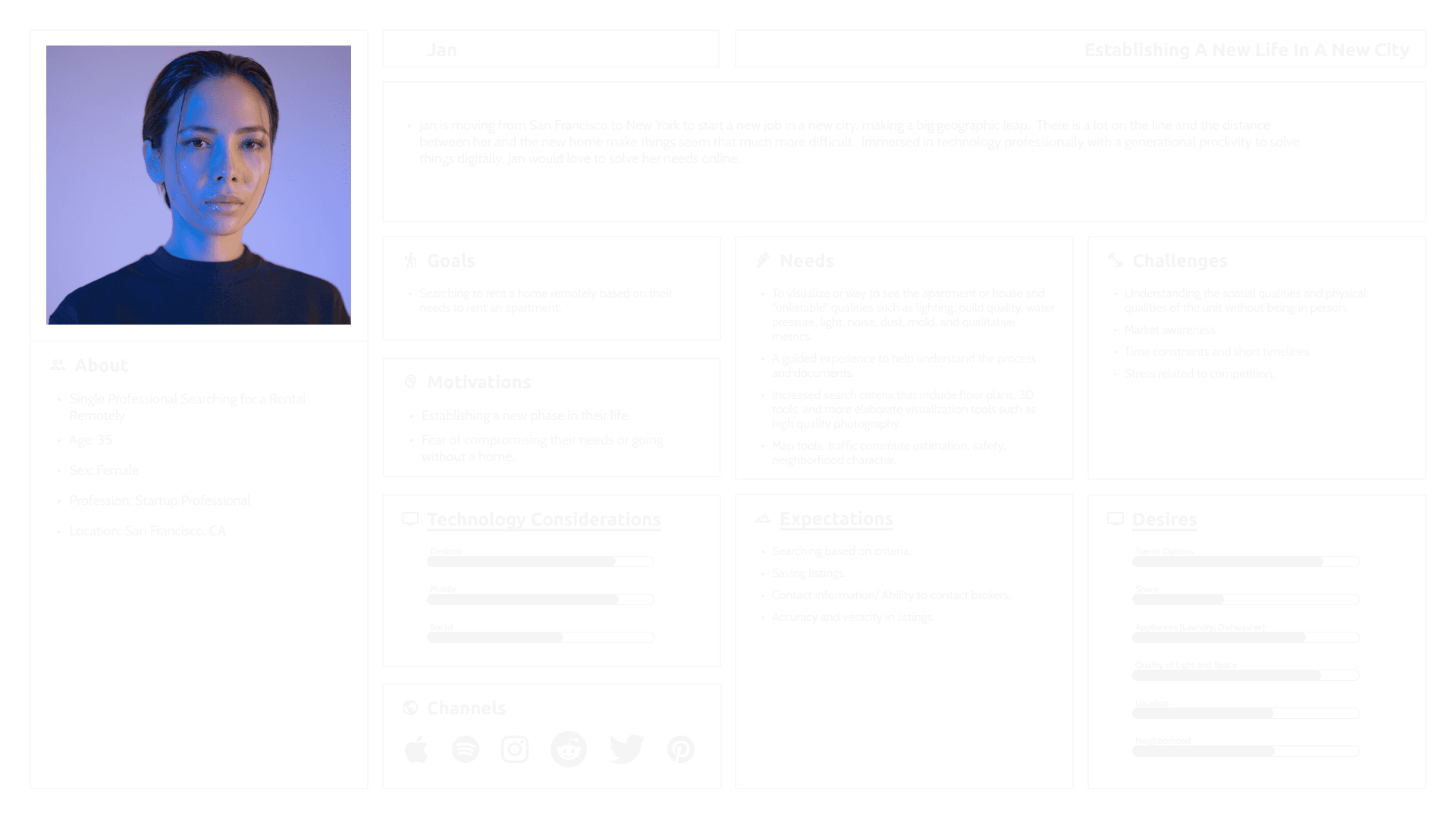 I think the biggest discovery I made was about people’s emotional state while searching for housing. It is a very stressful experience that is compounded by a number of factors such as family, finances, third parties, timelines, and fear of going without housing. It was the most consistently reported sentiment for everyone and it seems like a backdrop or overall context for this design exploration.