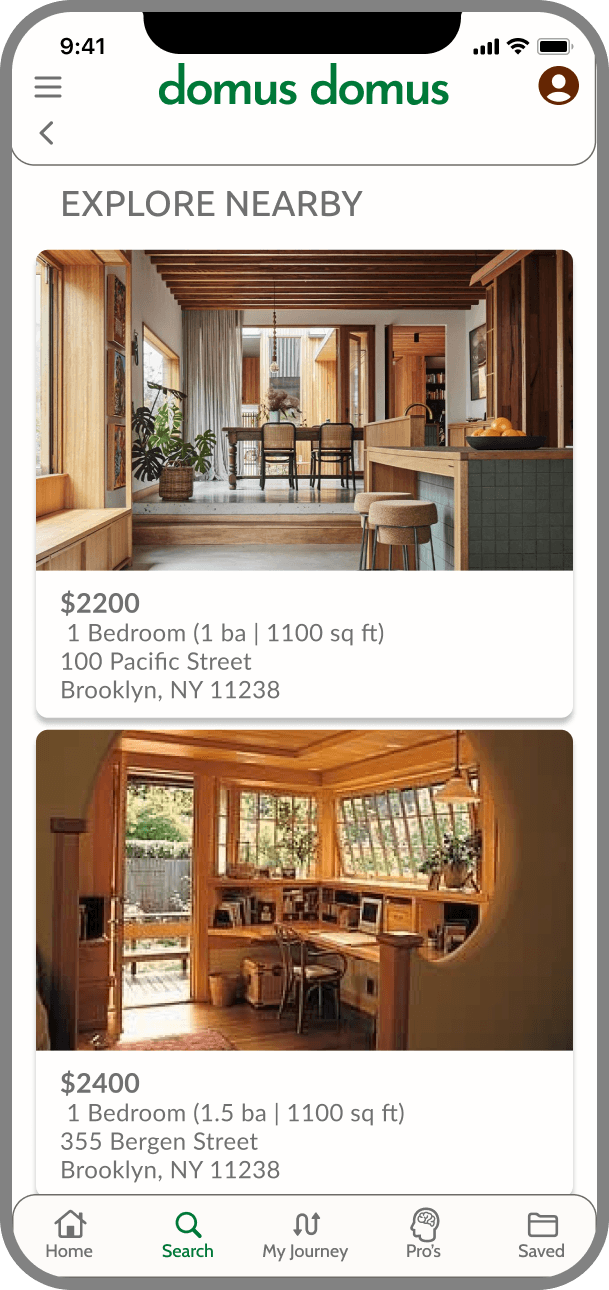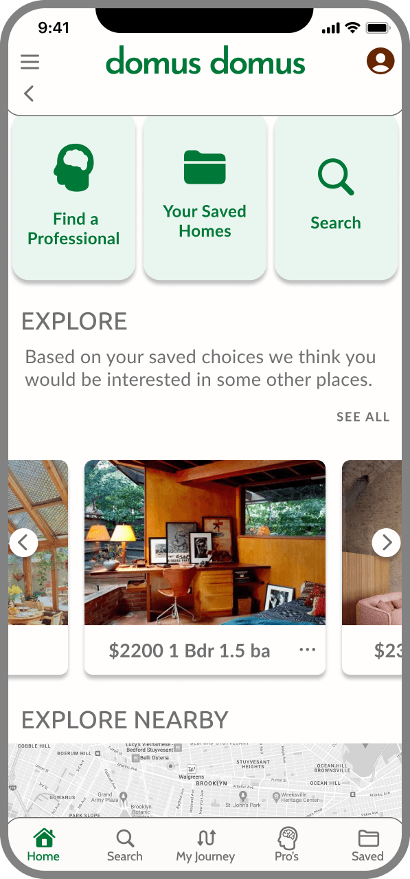 Domus Domus (Home Home in Latin) hopes to be all of the above - a helpful service to help the user to find a home and move into a new phase of their lives. Geared toward the urban, mobile, and professional set.