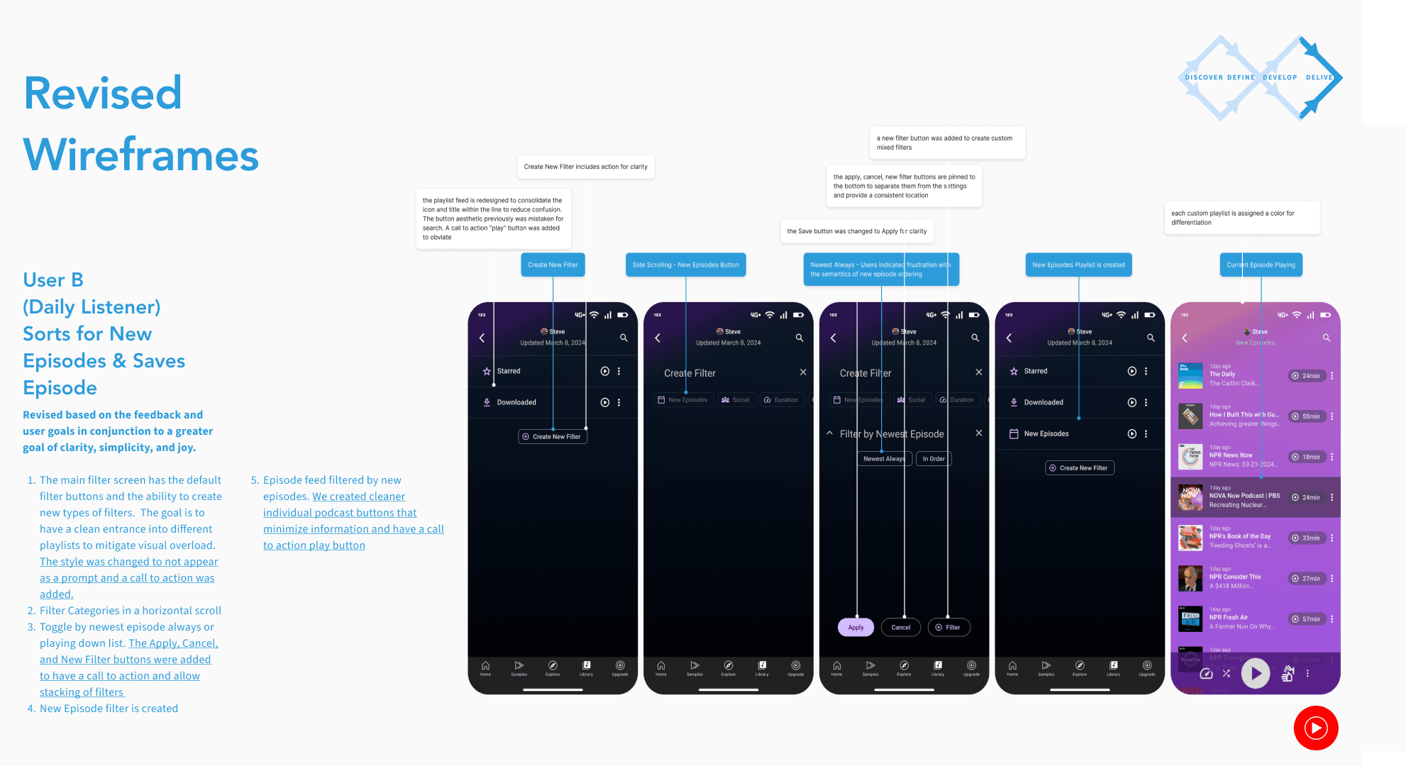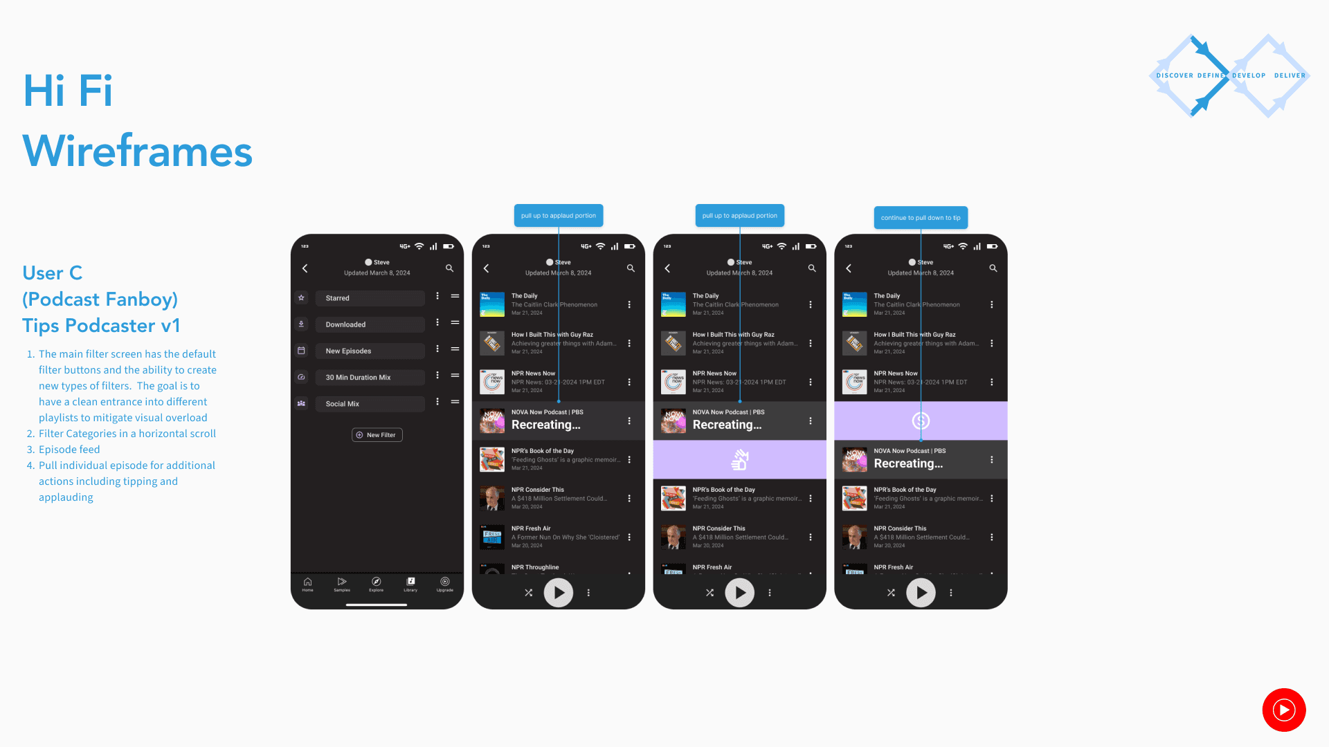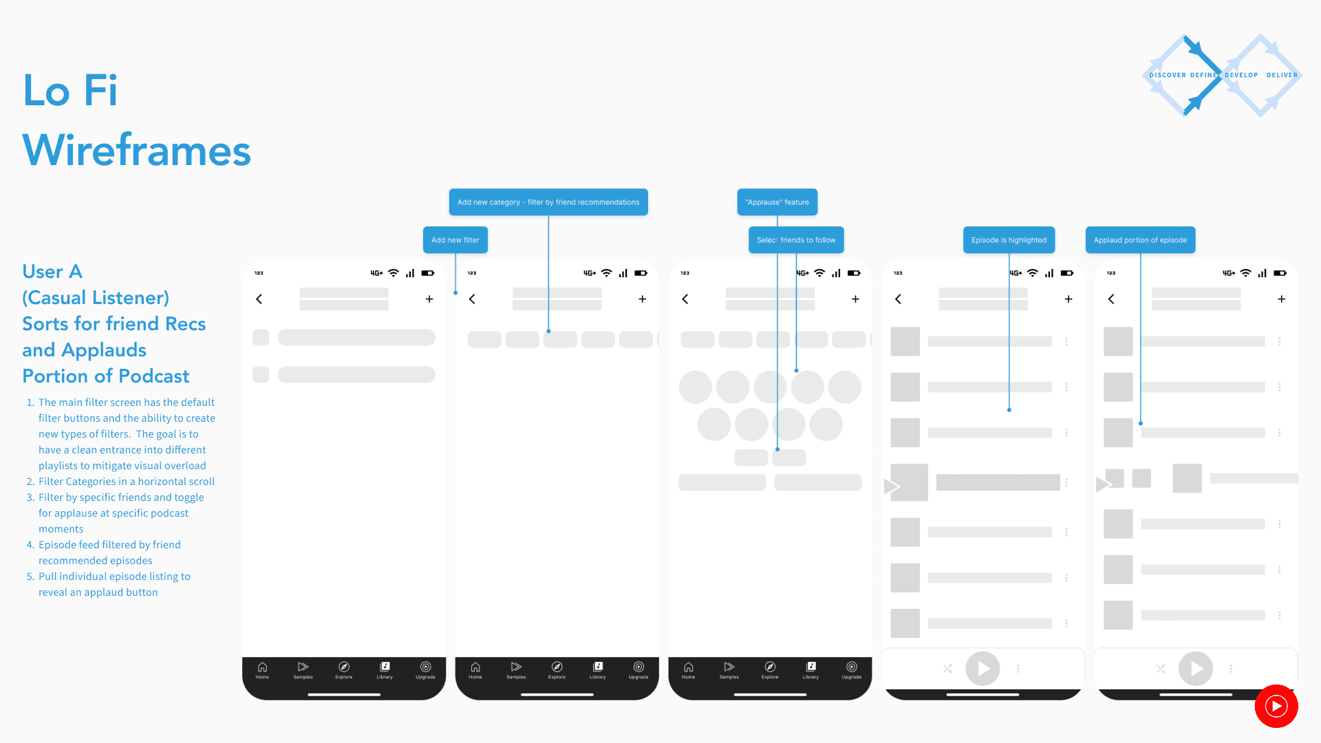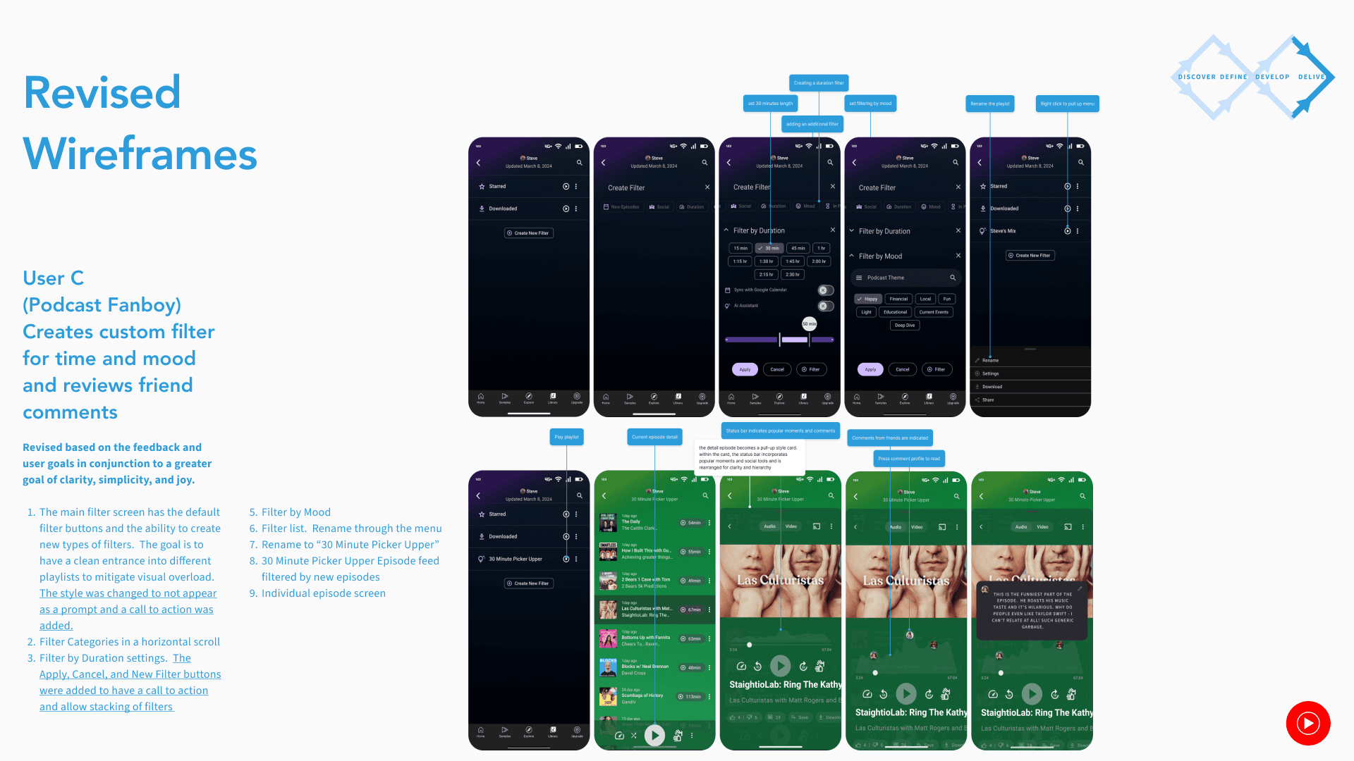 The goal is to create a simple, fun, and straightforward library feature that caters to serious podcast listeners and casuals alike separate of music streaming. It will draw on the strengths of the previous platform and creates a unique joyful listening experience.