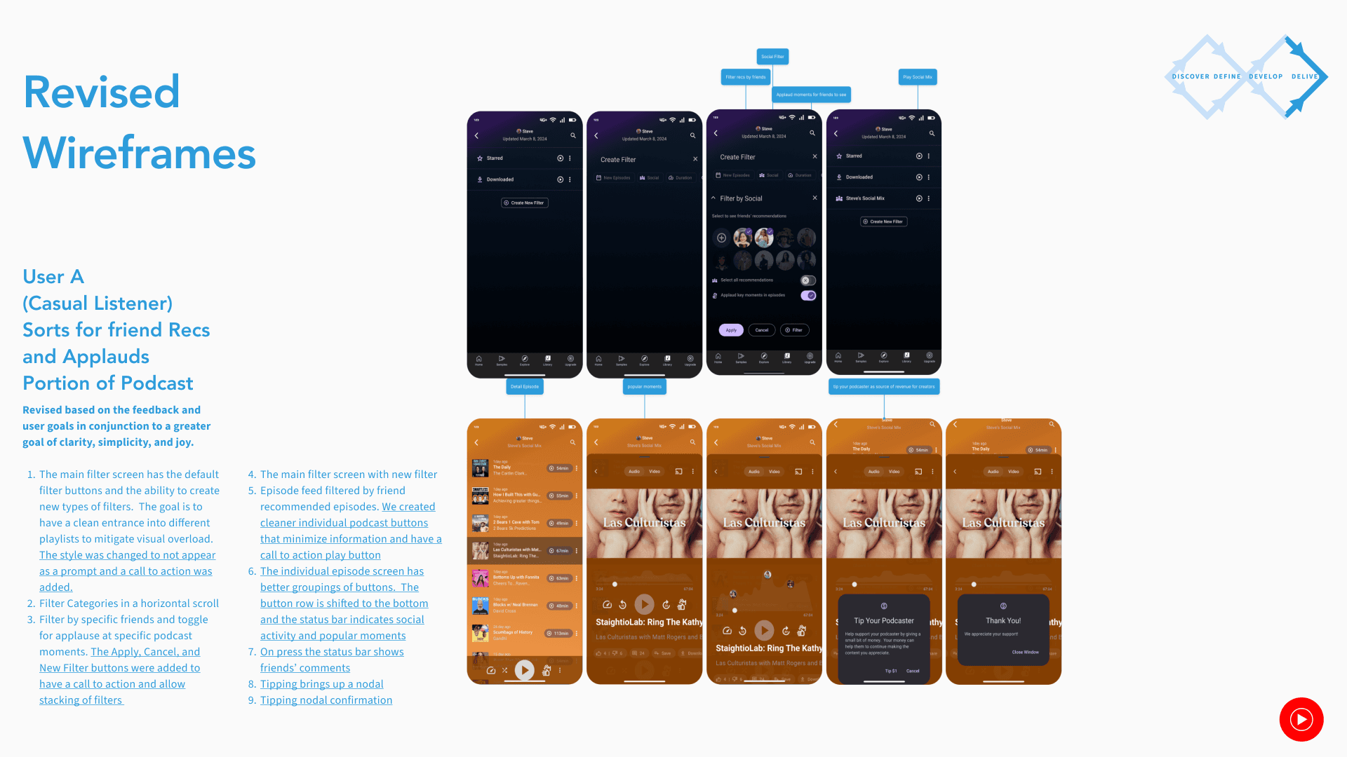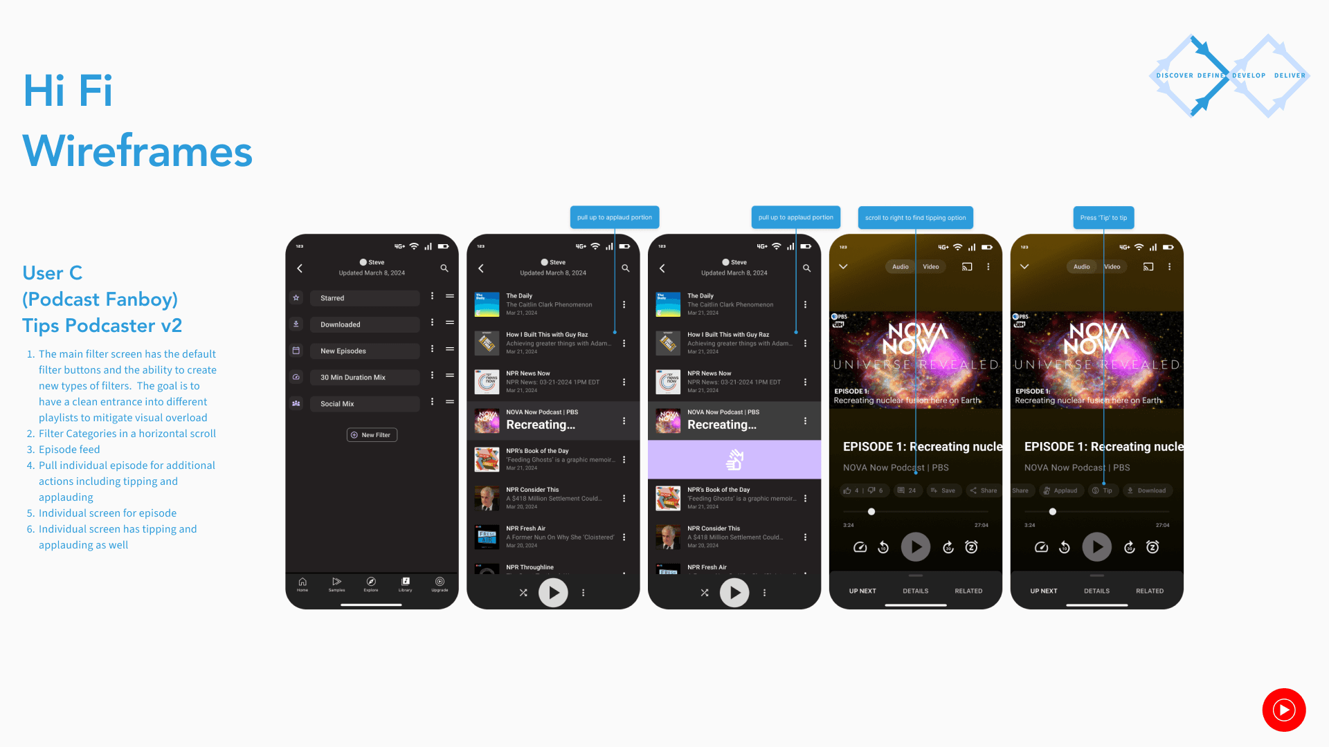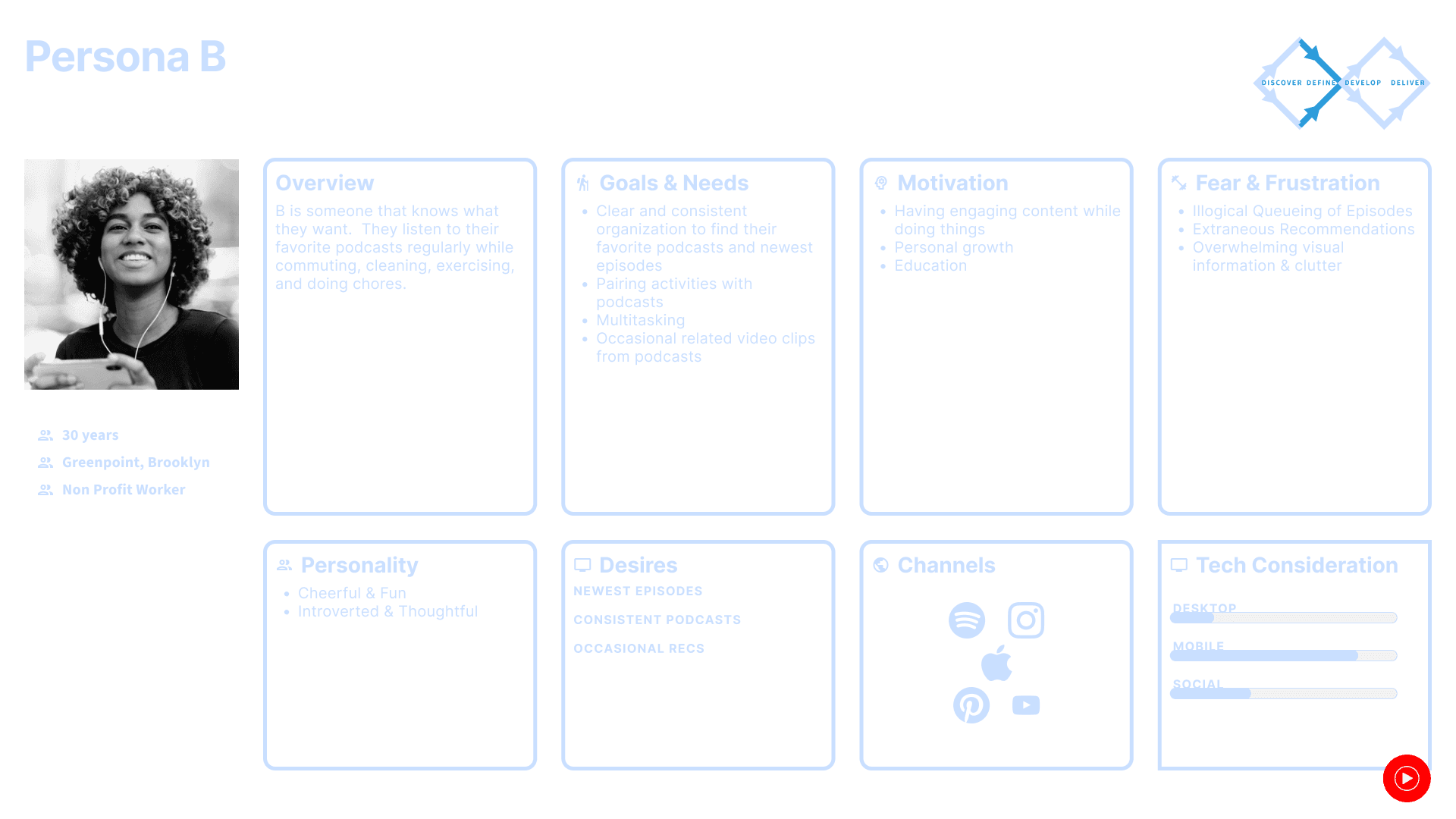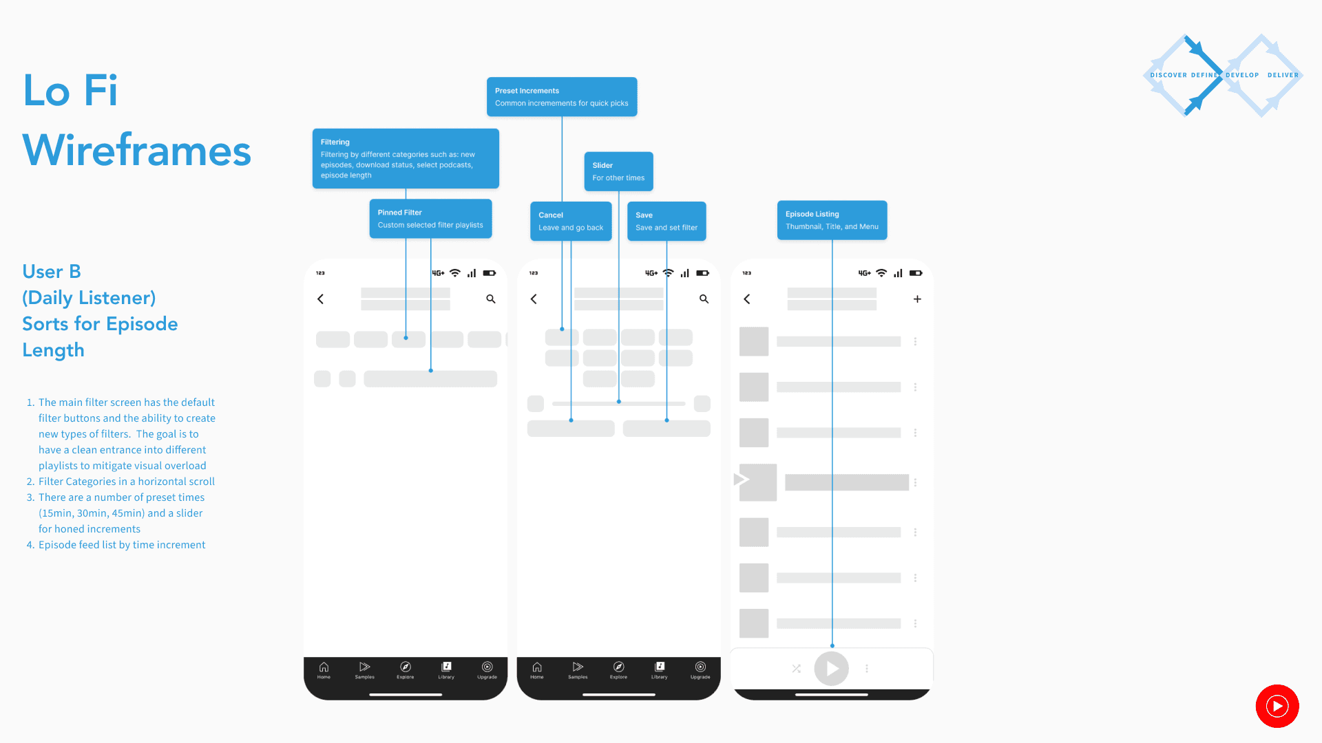 The goal is to create a simple, fun, and straightforward library feature that caters to serious podcast listeners and casuals alike separate of music streaming. It will draw on the strengths of the previous platform and creates a unique joyful listening experience.