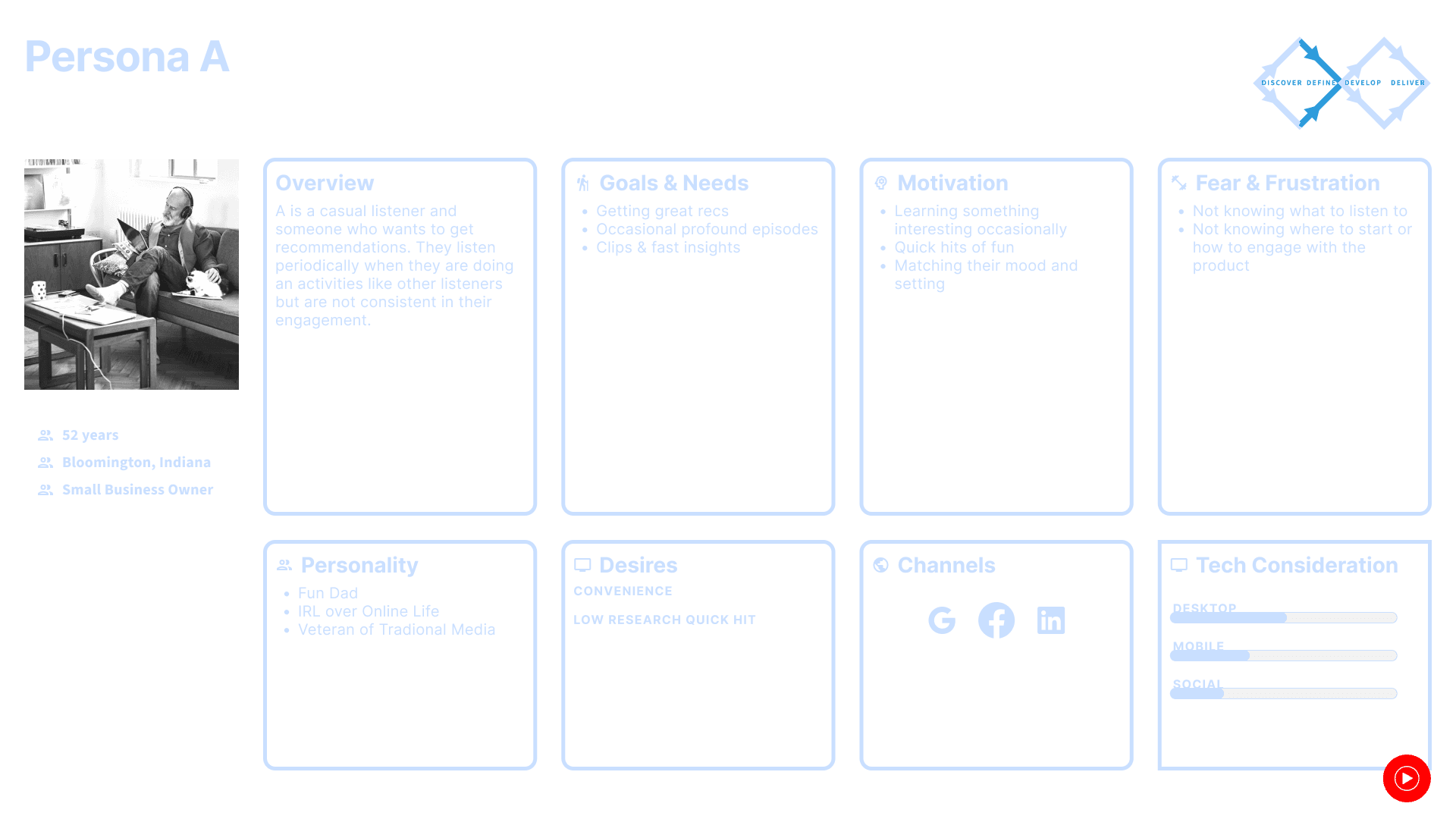 Armed with a number user issues we created archetypal user personas to embody our discoveries.